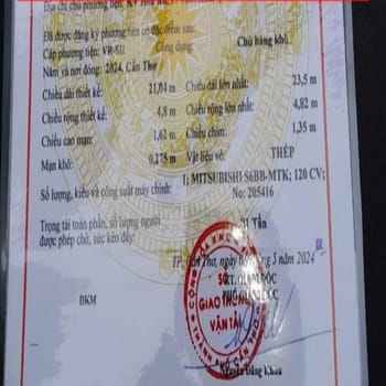 Dài: 23.5 mét | Rộng: 4.82 mét | Máy: mitsubishi 6D22 | Tải trọng: 130 Tấn | Năm đóng: 2024